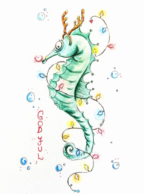 Julekort, sjøhest PrisNOK30,00 inkl. mva. På lager Kjøp Del dette Produktinfo Enkelt julekort 10,5 ×14,8 cm Trykk av akvarell Uten konvolutt